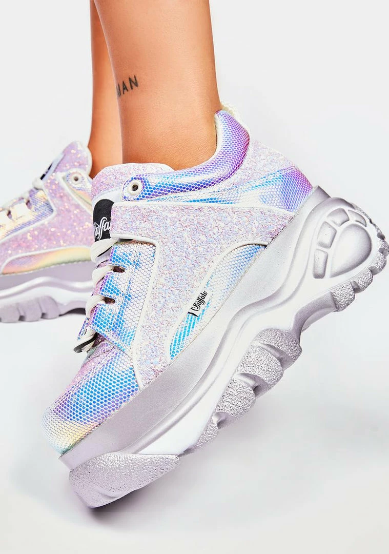 Best reviews of ???? Buffalo London Holographic Glitter Classic Low Leather Platform ???? Sneakers ????