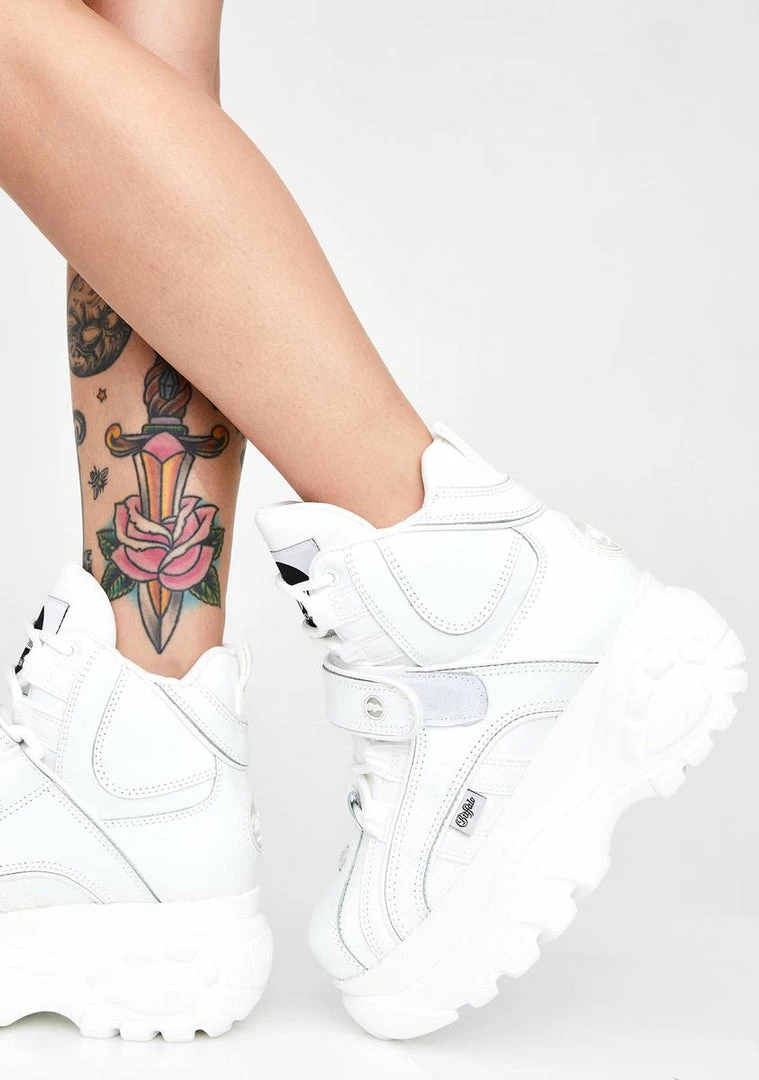 cuz youΓ’ΒΒre always the center of attention! Keep it one-hundred in these sikk AF high top sneakers that have iconic chunky platform soles, adjustable lace-ups with velcro strap closures, and padded shafts NΓ’ΒΒ insoles for maxxx comfort in every step ya take.