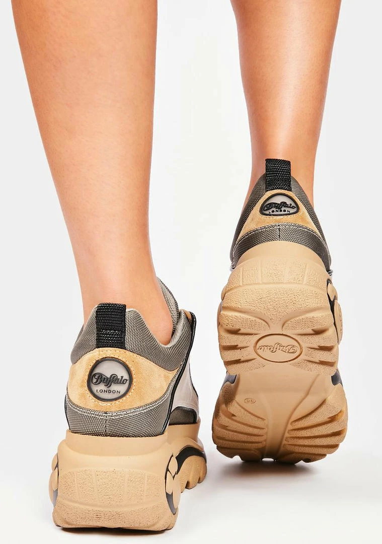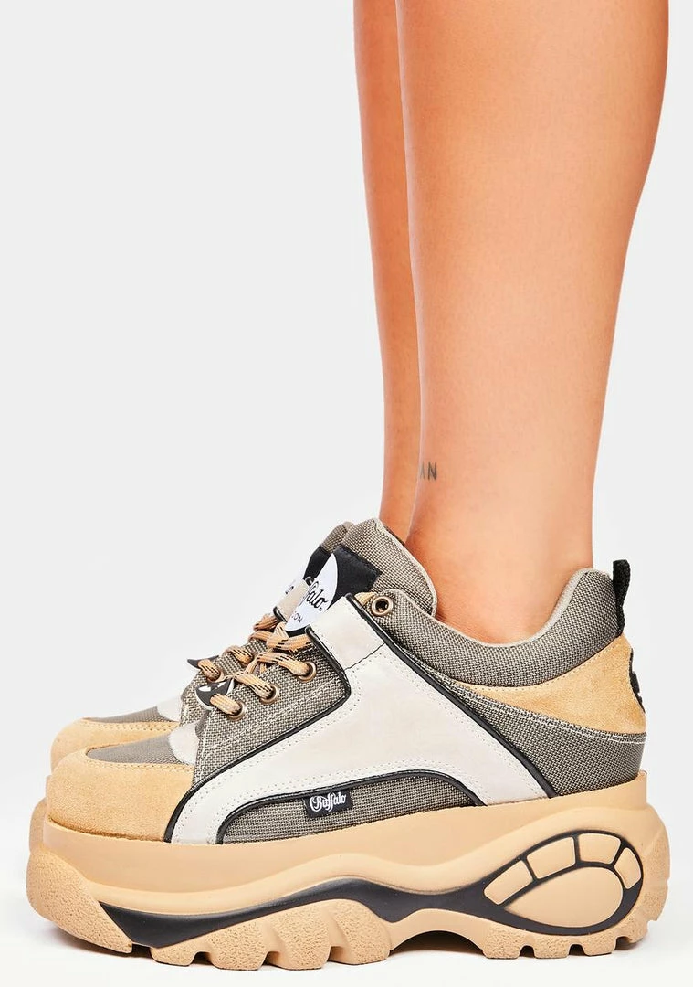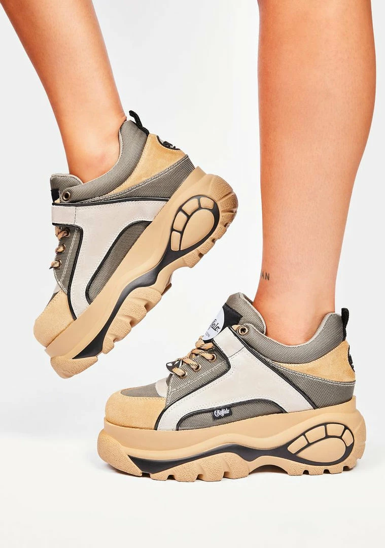 New ???? Buffalo London Platforms Beige Multi Classic Low Suede Platform ???? Sneakers ????
