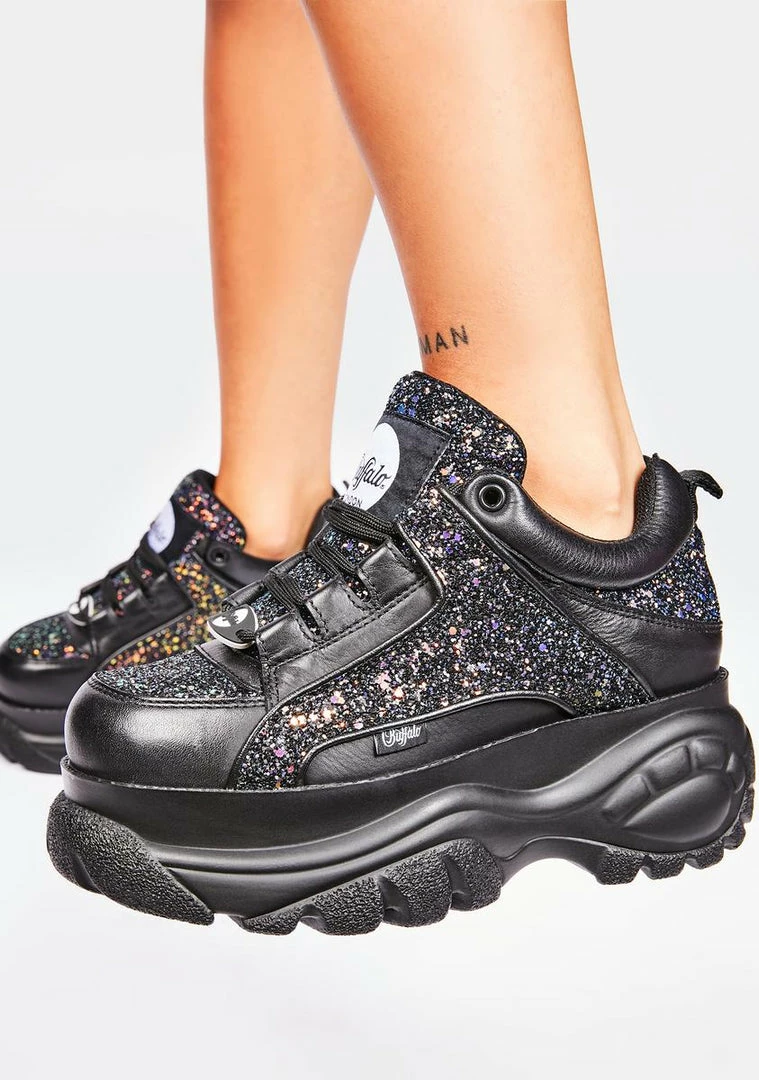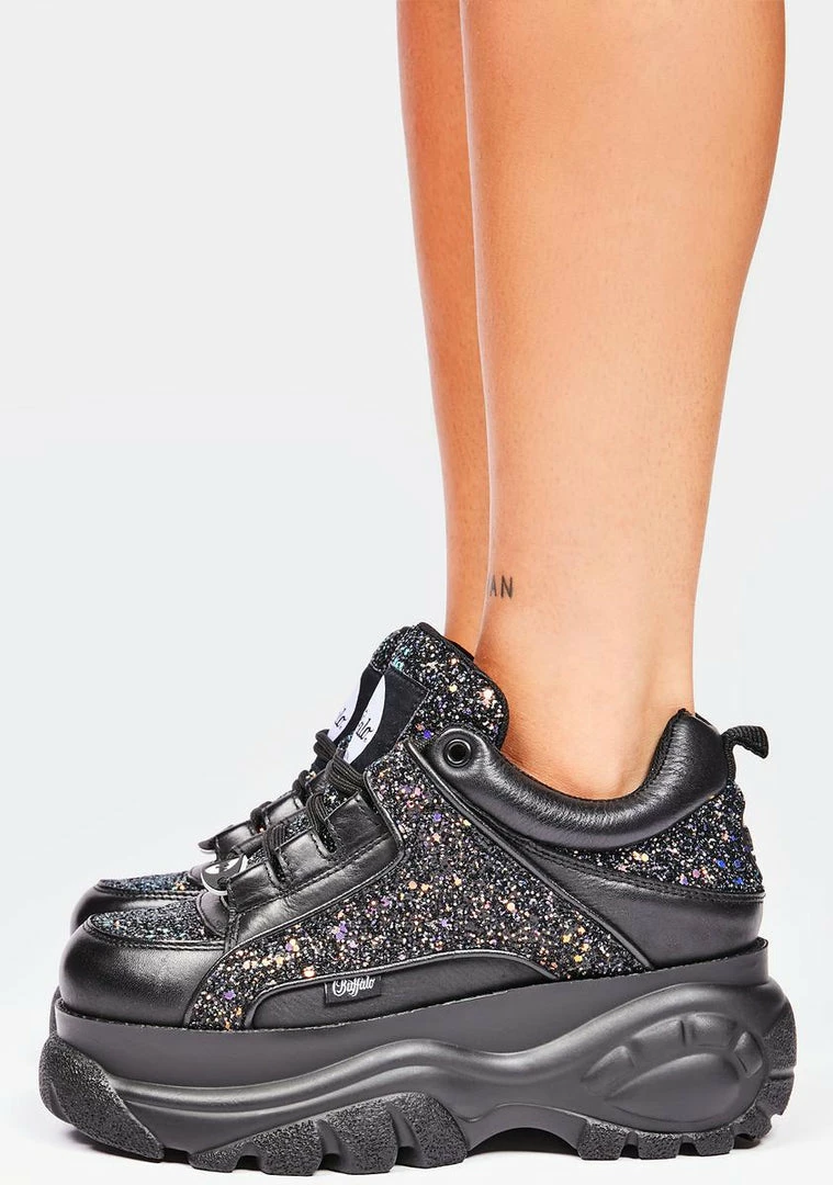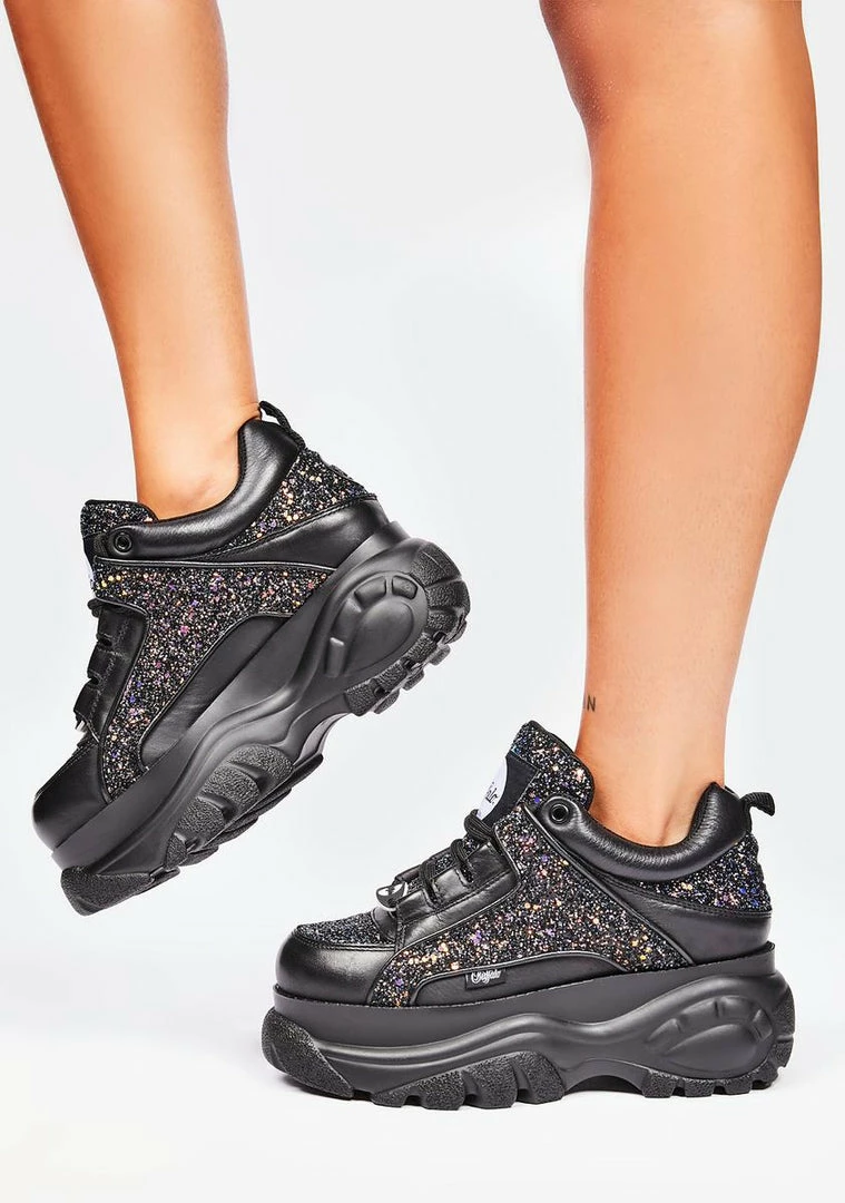 Cheap ???? Buffalo London Platforms Black Glitter Classic Low Leather Platform ???? Sneakers ????