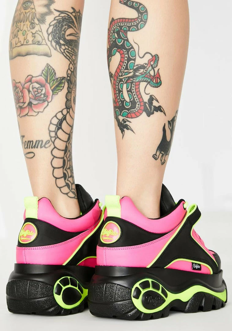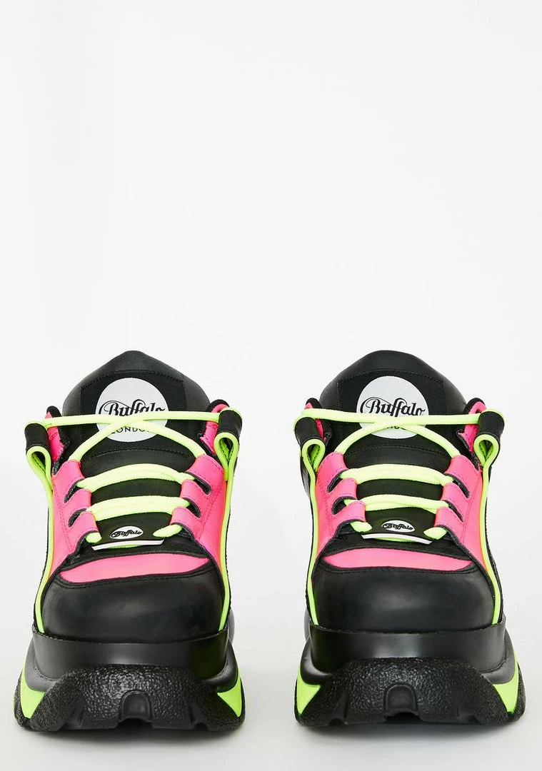 New β Buffalo London Platforms Fuchsia Neon Classic Low Leather ???? Sneakers ????