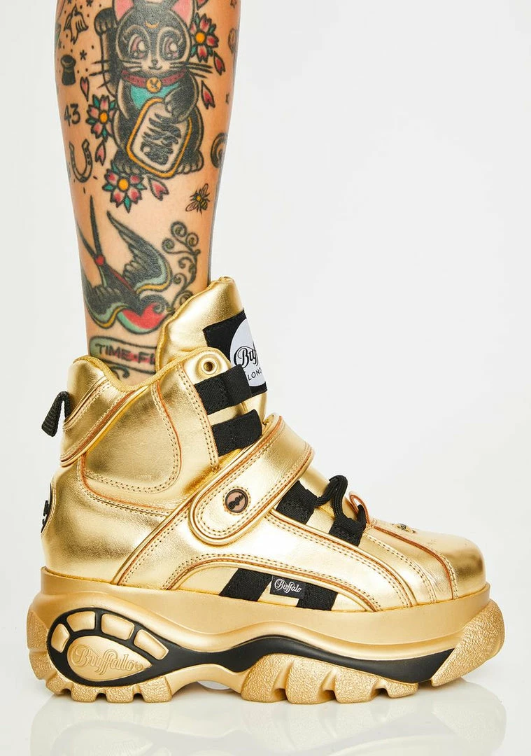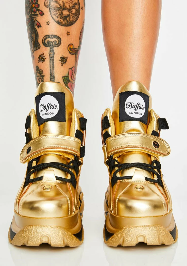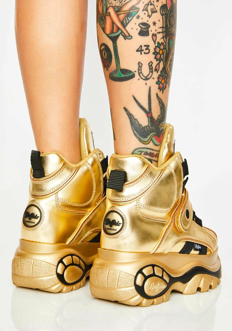 Buy ???? Buffalo London Platforms Gold Classic High Nappa Leather ???? Sneakers ????