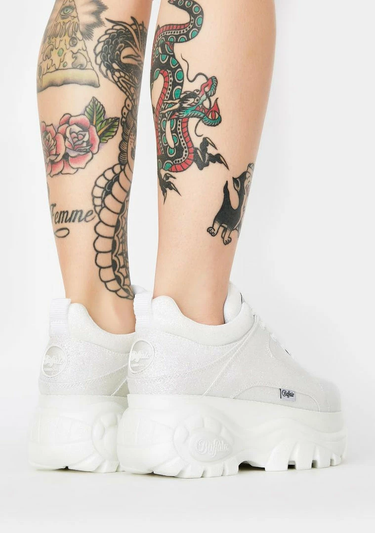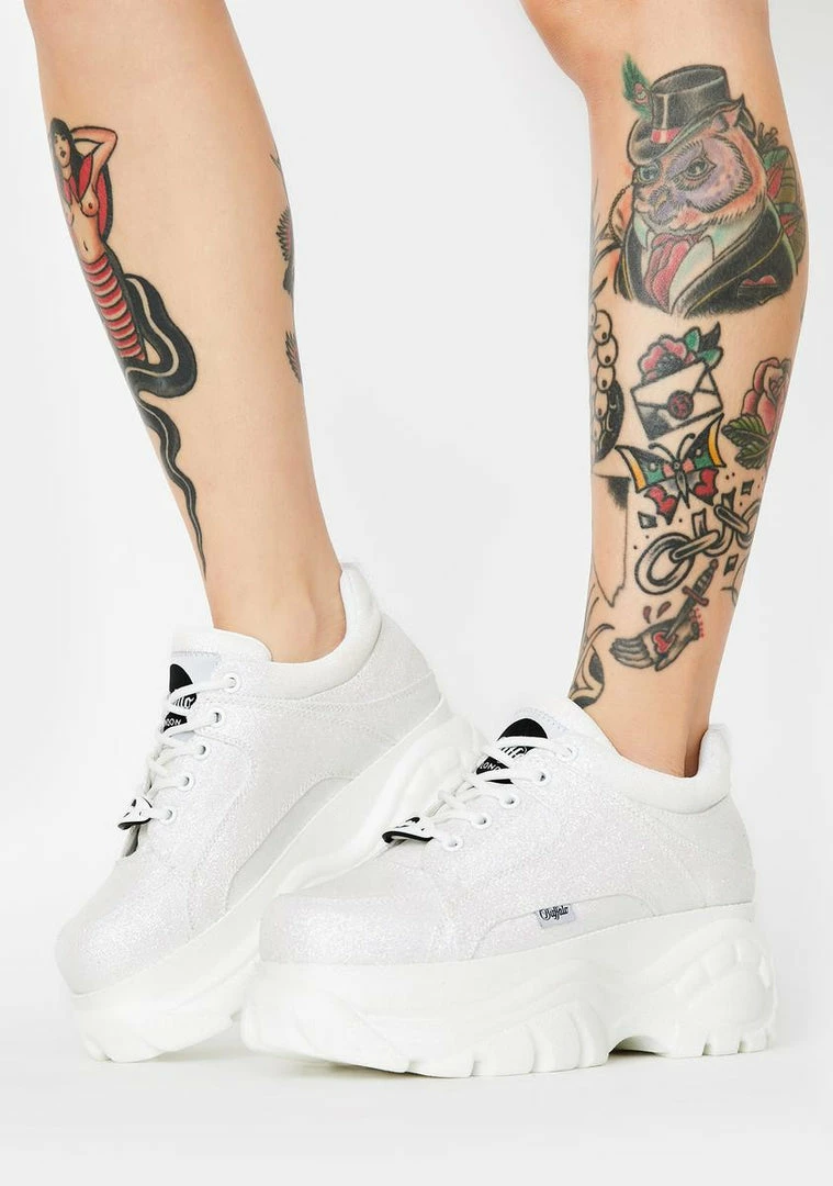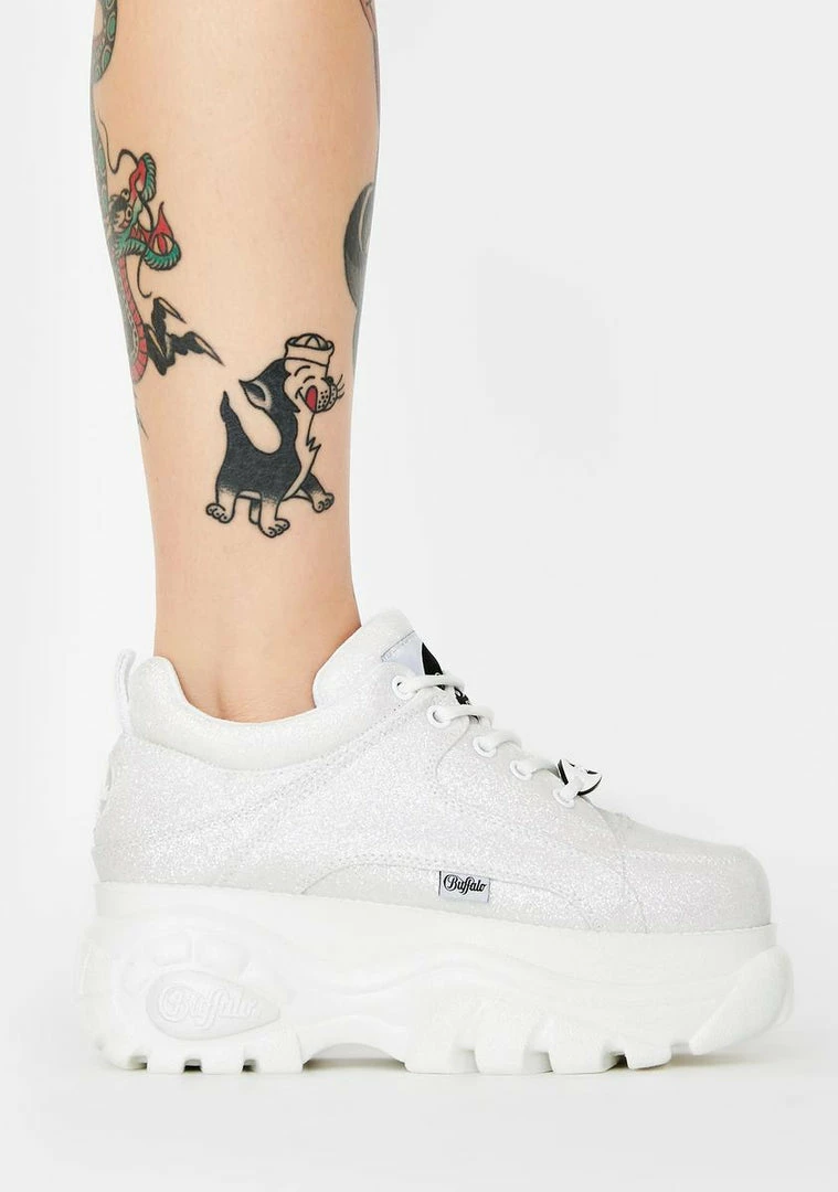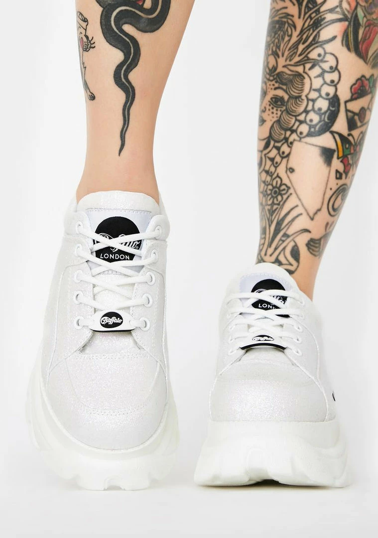 Budget ✔️ Buffalo London Platforms White Glitter Classic Low Leather ???? Sneakers ????