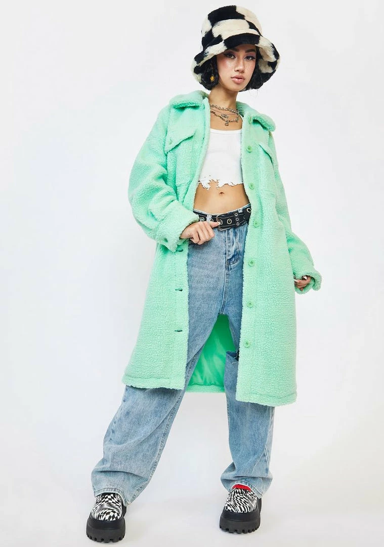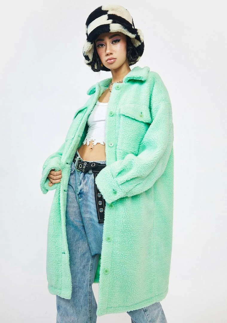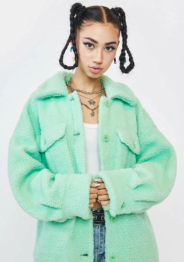 Deals ???? Girlfriend Material Mint Green Sander Teddy Jacket Outerwear ✔️