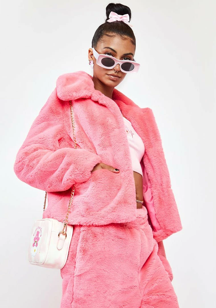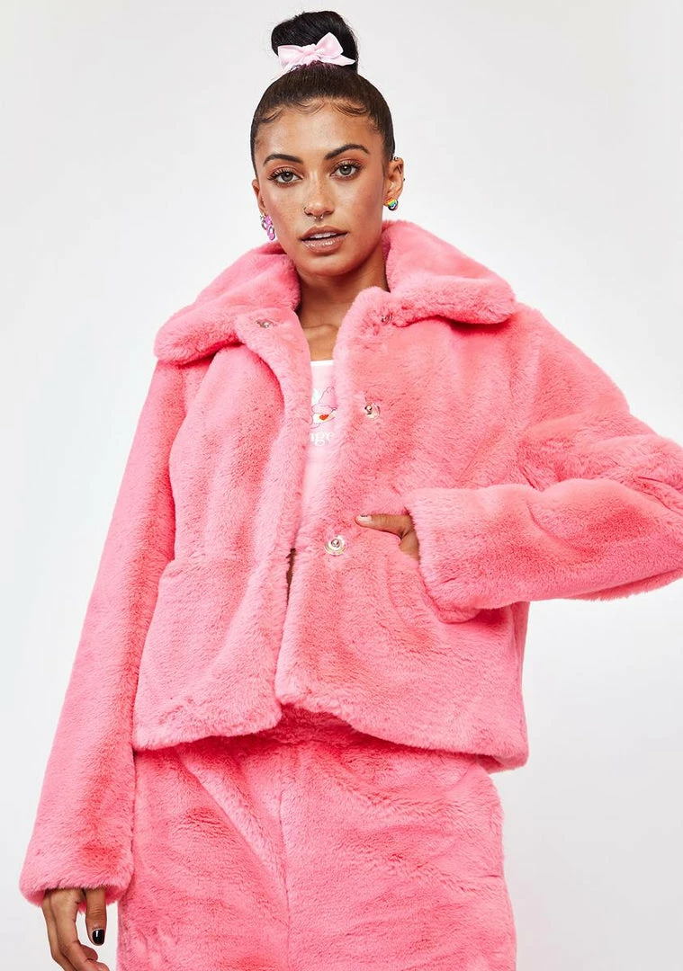 Best reviews of ???? Girlfriend Material Pink Jax Cropped Faux Fur Jacket Outerwear ????