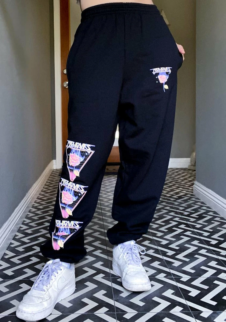 will expand yer mind! Feel it all drift away in these relaxed fit sweatpants that have an elastic drawstring waistband and trippy retro graphics on the front.