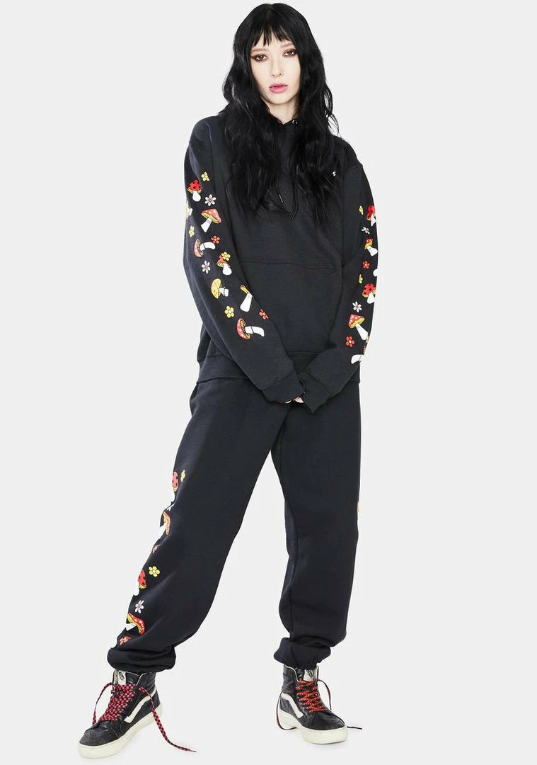 Buy ???? No Hours Black Shroom Graphic Sweatpants Bottoms ????