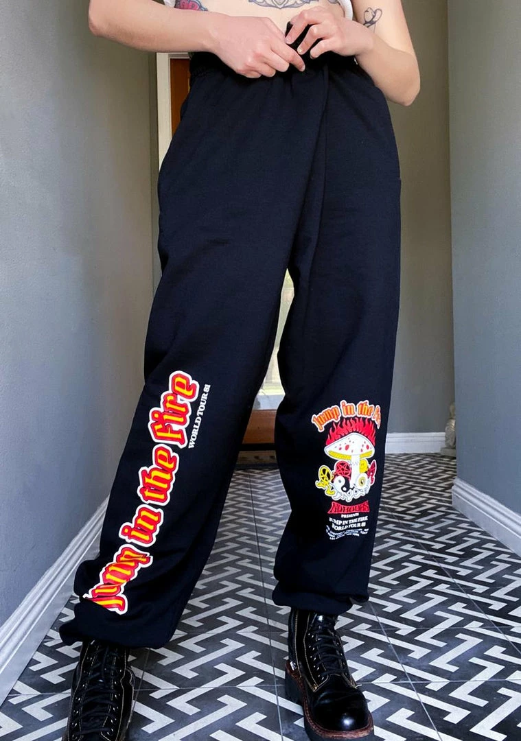 cuz yer not afraid on gettinâ burned! Jump in feet first in these rad jogger sweatpants that have sikk screen printed graphics on the front N’ back, an elastic drawstring waistband and supa comfy relaxed fit.