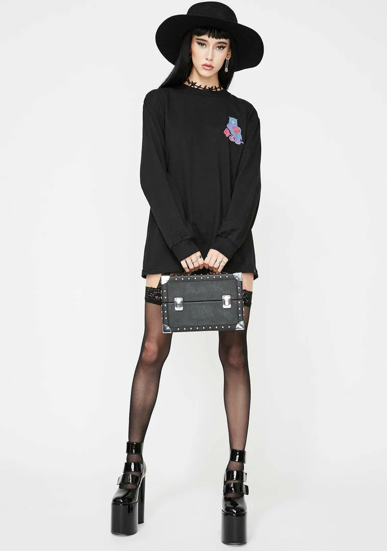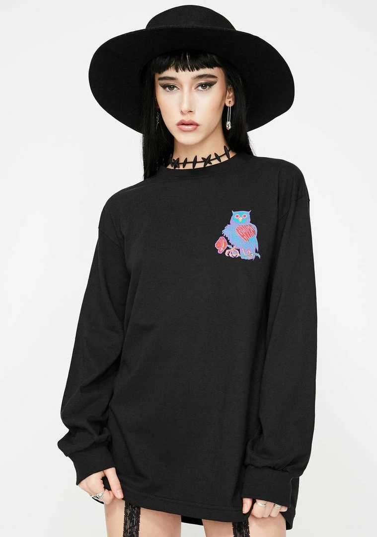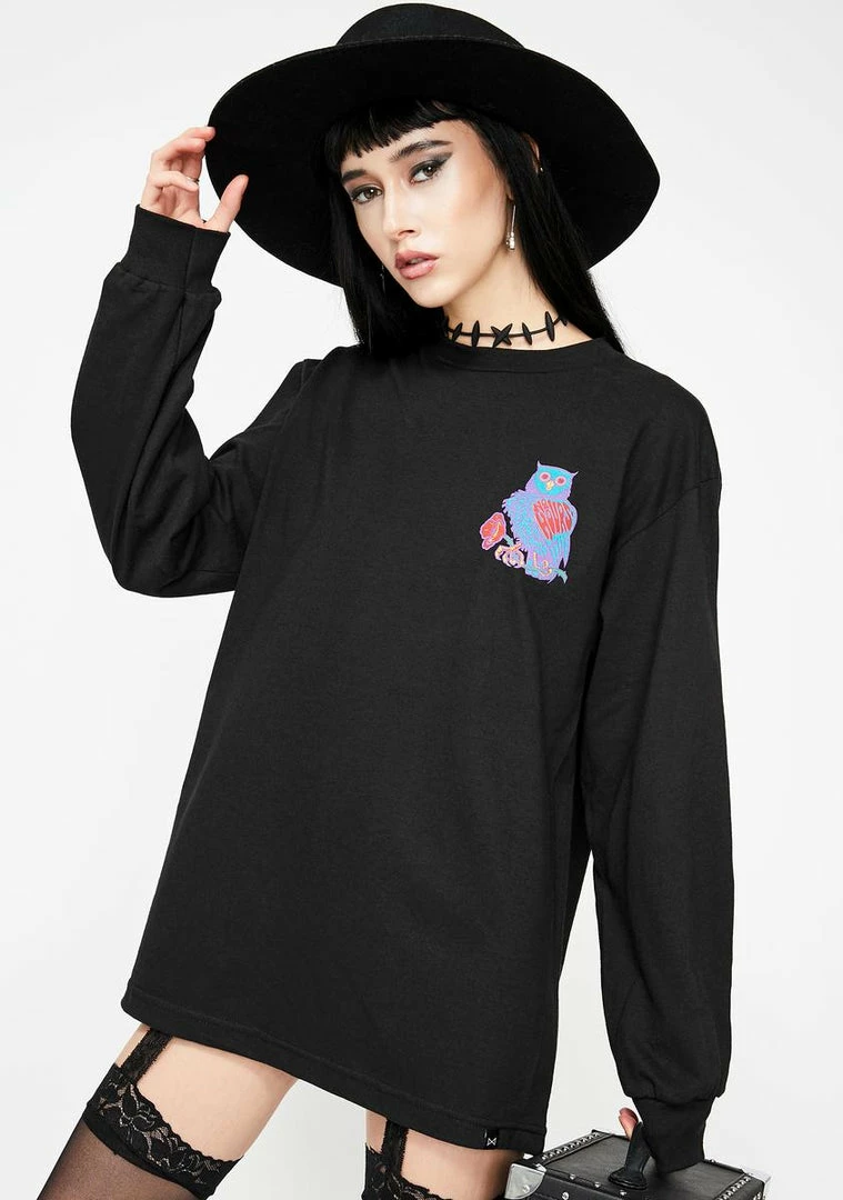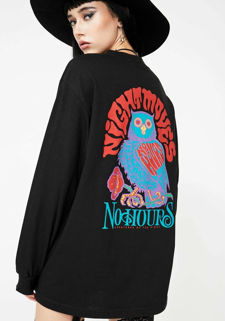 cuz ya got nocturnal instincts, sis. Bathe in the moonlight in this rad long sleeve tee that has night owl graphics on the back N’ front, a crew neckline and relaxxxed fit.