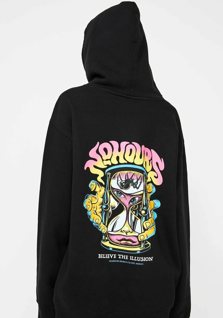 cuz their time is almost up⦠Believe the illusion in this wicked AF hoodie that has drawstring pulls, a kangaroo pocket, and hourglass graphics on the front Nâ back.