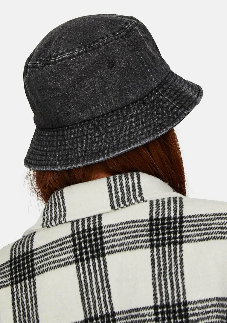 cuz you’re your own ride or die. This washed black denim bucket hat has a soft brim and a front embroidered design.