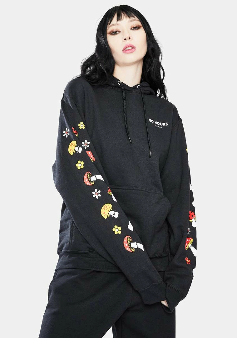 Hot Sale ???? No Hours Tops Black Shroom Graphic Hoodie ????