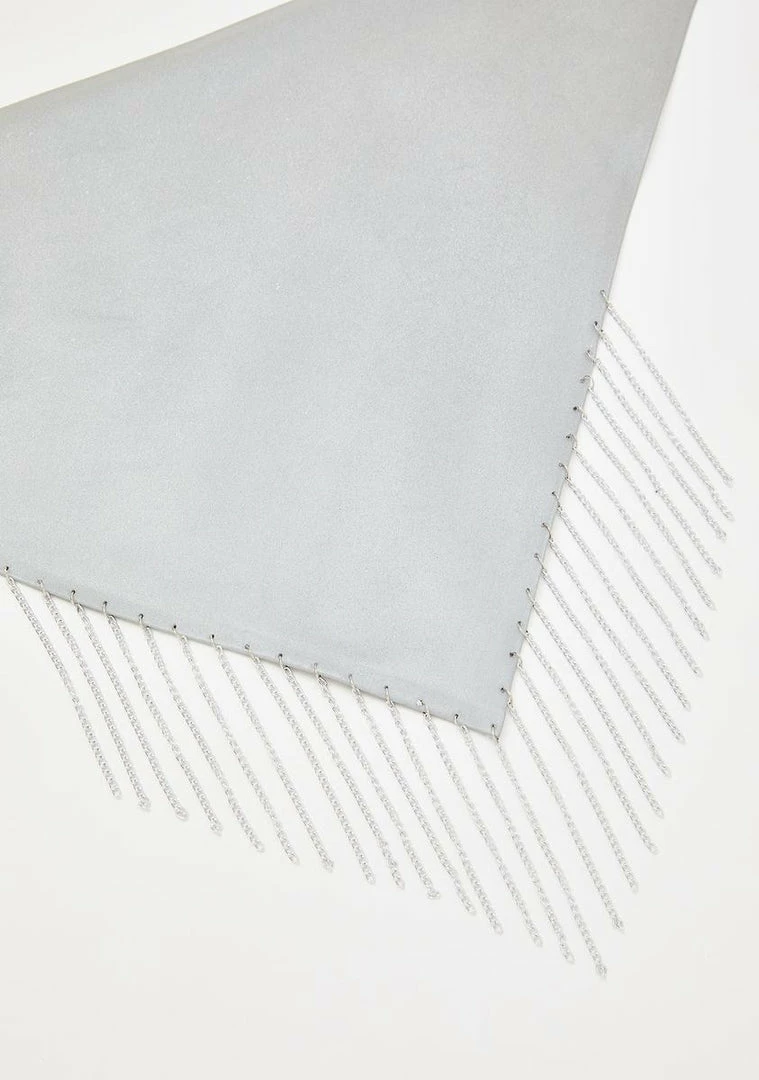 cuz you rule the cyber world. Survive a malfunction in this chrome reflective bandana that has tie closures and sikk chain fringe trim.