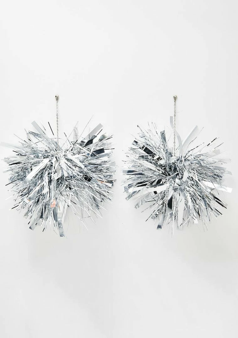 will have you ready for Club 96. Serve disco vibez in these metallic tinsel earrings that have drop chain attachments and post back closures.